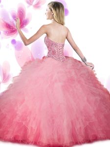 Sweetheart Sleeveless Ball Gown Prom Dress Floor Length Beading and Ruffled Layers Pink Organza