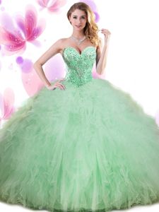 Elegant Pick Ups Ball Gowns Sweet 16 Quinceanera Dress Apple Green Sweetheart Tulle Sleeveless Floor Length Lace Up