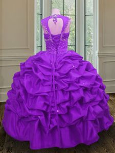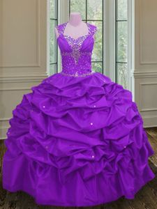 Elegant Pick Ups Ball Gowns Sweet 16 Quinceanera Dress Purple Straps Taffeta Sleeveless Floor Length Lace Up
