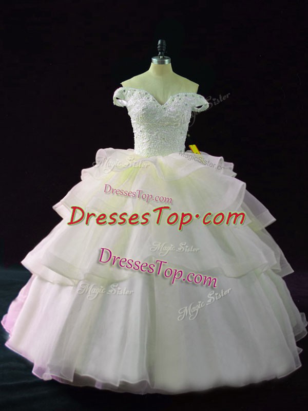 Elegant Pink Sleeveless Beading and Ruffled Layers Lace Up Quinceanera Dresses