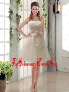 Elegant Princess Mini Length Lace Dama Dress with Bowknot