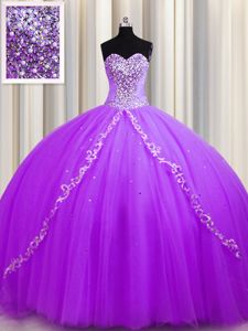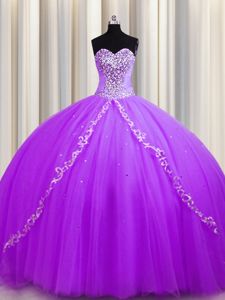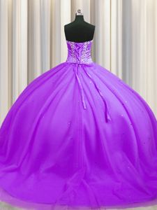 Elegant Purple 15 Quinceanera Dress Tulle Sweep Train Sleeveless Beading