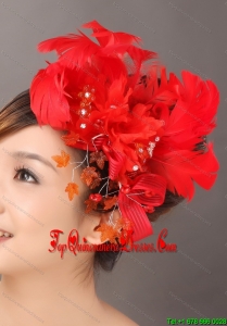 Elegant Red Feather Flowers Beading Womens Fascinators