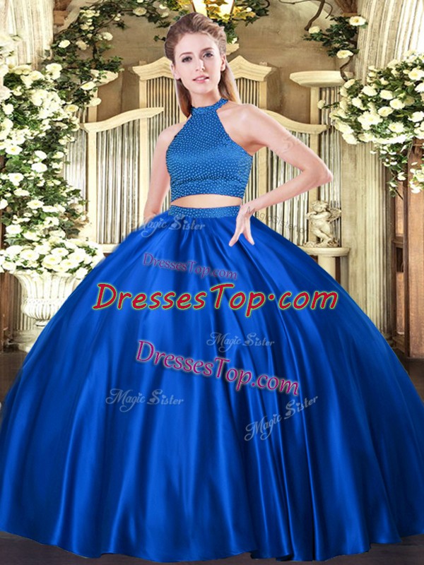 Elegant Royal Blue Sleeveless Beading Floor Length Quinceanera Dress