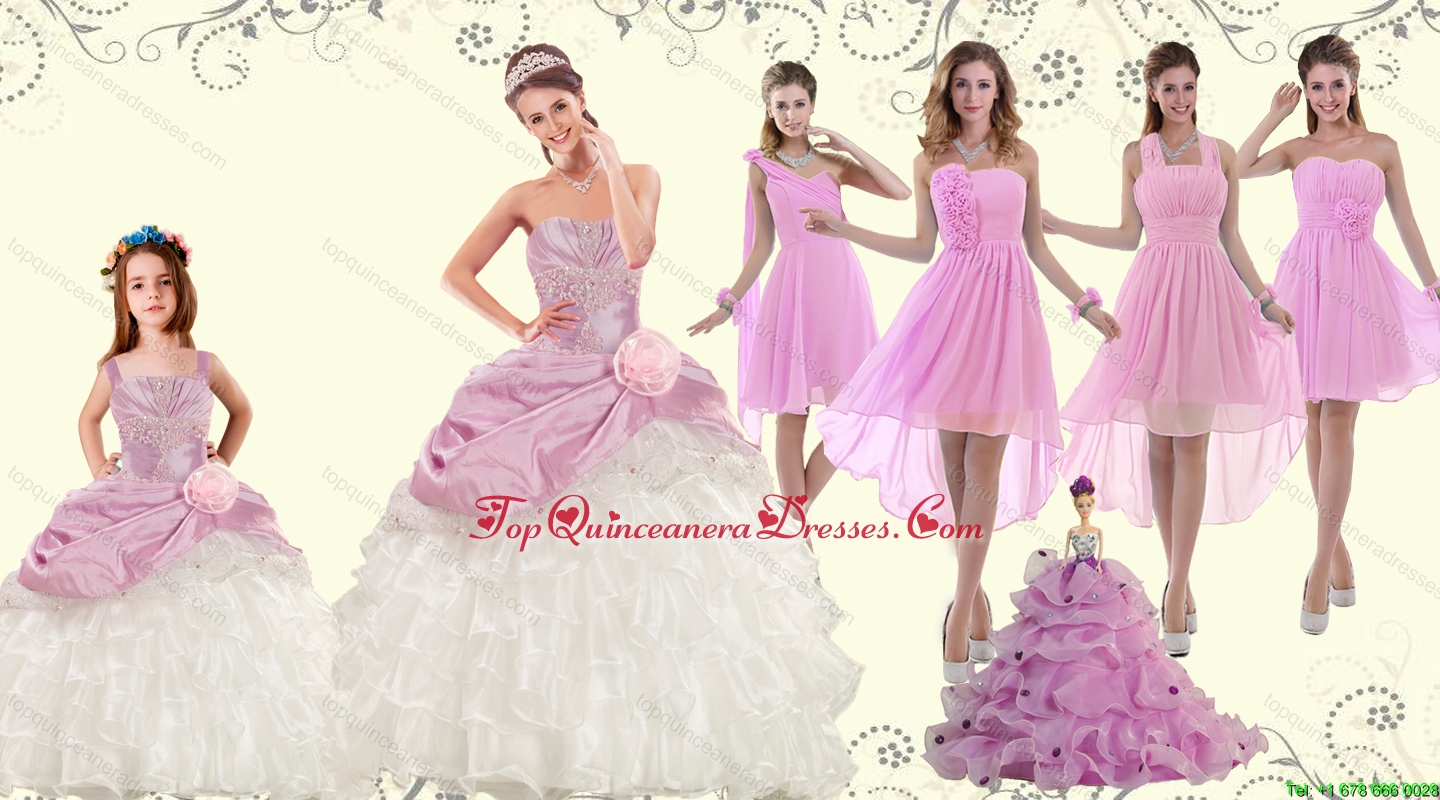 Elegant Ruffles Multi Color Quinceanera Dress and Pink Short Dama Dresses and 2015 Straps Ruffles Little Girl Dress
