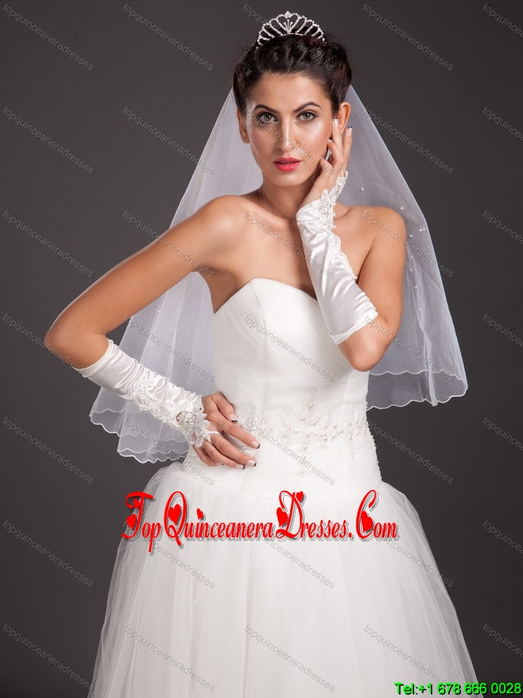 Elegant Satin Fingerless Elbow Length Appliques Bridal Gloves