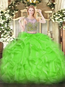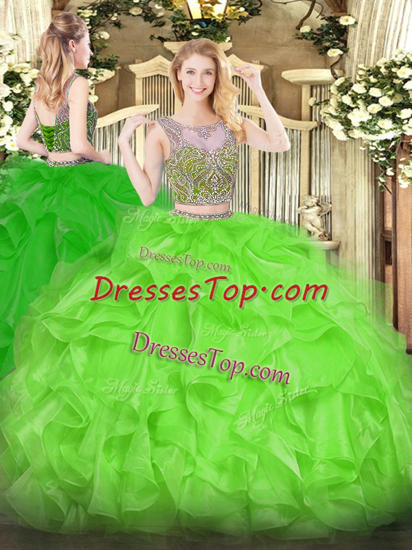 Elegant Scoop Sleeveless Lace Up Sweet 16 Dresses Organza