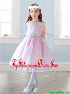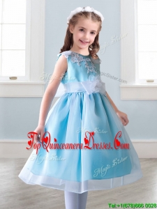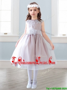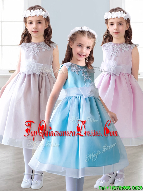 Elegant Scoop Tea Length Mini Quinceanera Dress with Appliques and Hand Made Flowers
