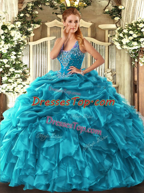 Elegant Sleeveless Lace Up Floor Length Beading and Ruffles and Pick Ups Sweet 16 Quinceanera Dress