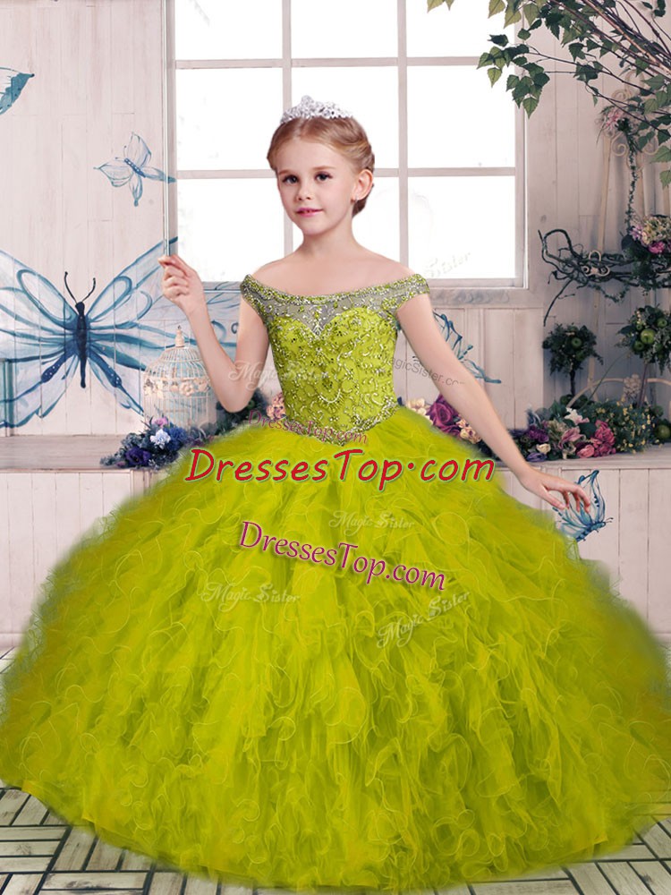 Elegant Sleeveless Lace Up Floor Length Beading and Ruffles Glitz Pageant Dress