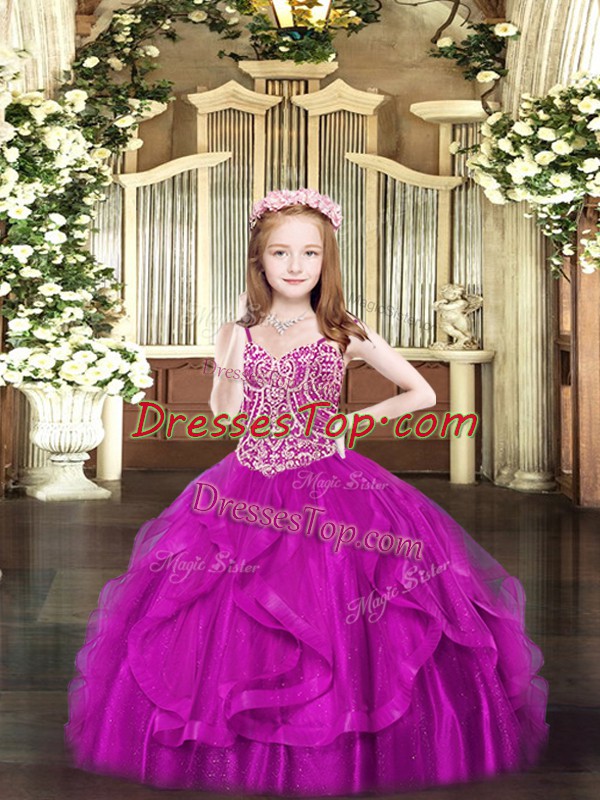 Elegant Sleeveless Lace Up Floor Length Beading and Ruffles Little Girl Pageant Gowns