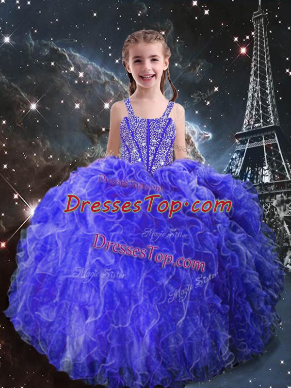 Elegant Sleeveless Organza Floor Length Lace Up Pageant Dress Womens in Eggplant Purple with Beading and Ruffles