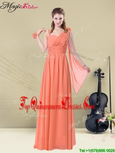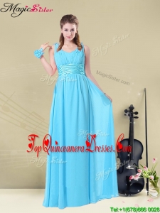 Elegant Straps Floor Length Dama Dresses with Ruching and Belt for Summer