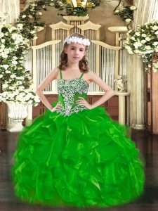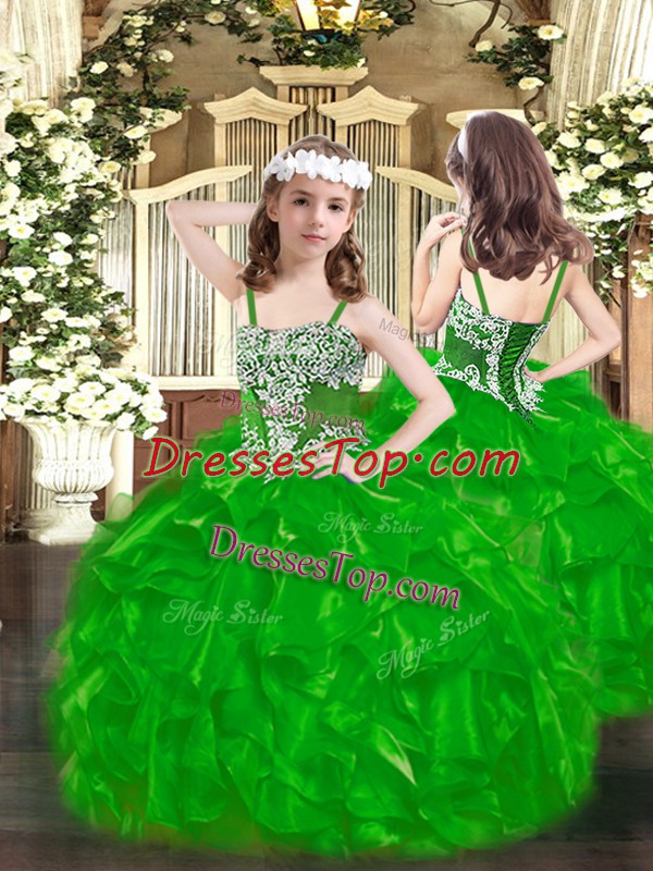 Elegant Straps Sleeveless Winning Pageant Gowns Floor Length Appliques and Ruffles Green Organza