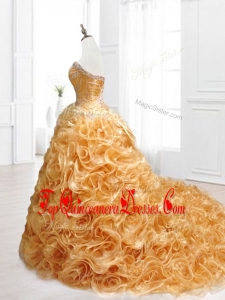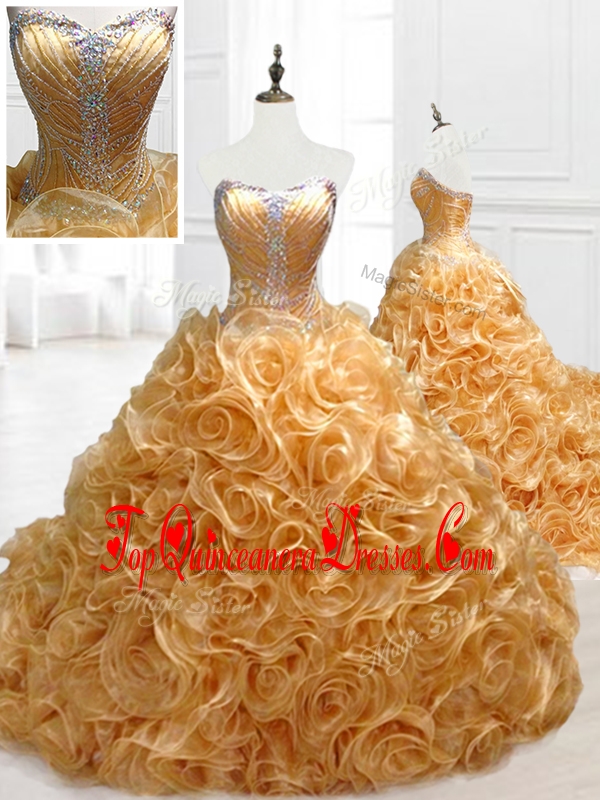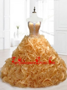 Elegant Sweetheart Rolling Flowers Brush Train Custom Made Quinceanera Dresses with Beading