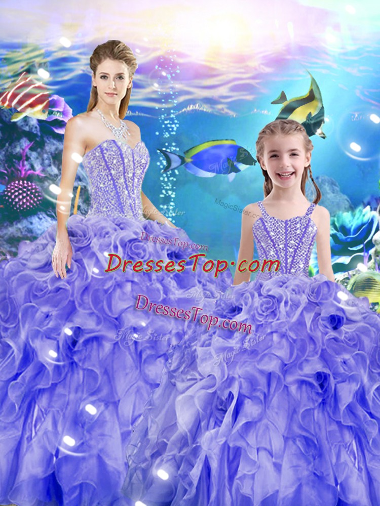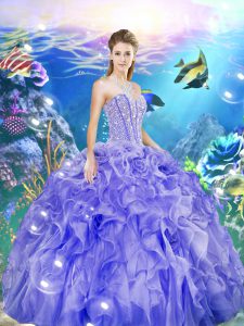 Elegant Sweetheart Sleeveless Lace Up Sweet 16 Quinceanera Dress Lavender Organza