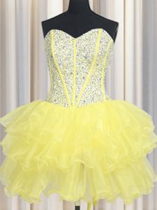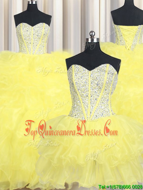Elegant Three Piece Beading and Ruffles 15th Birthday Dress Yellow Lace Up Sleeveless Floor Length