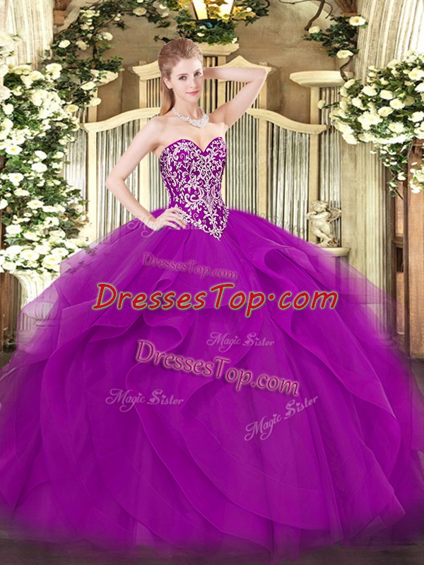 Elegant Tulle Sleeveless Floor Length 15th Birthday Dress and Beading and Ruffles