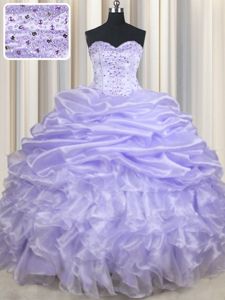 Elegant Turquoise Ball Gowns Sweetheart Sleeveless Organza Floor Length Lace Up Beading and Ruffles Quinceanera Dresses