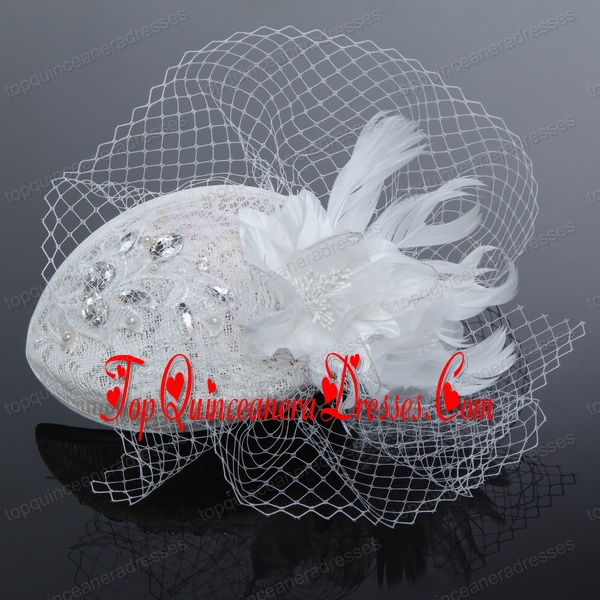 Elegant White 2014 Rhinestone Feather Hat Hair Ornament
