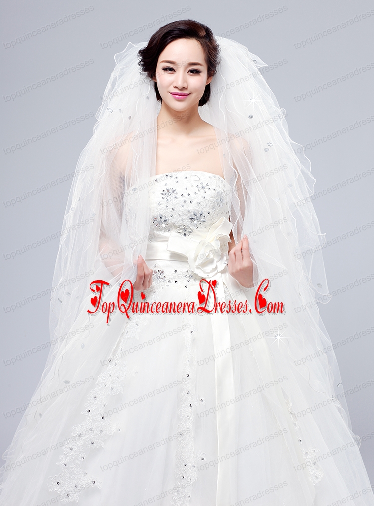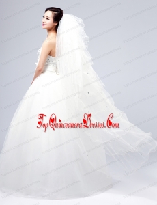 Elegant White Angle Cut Multi-Tier Finished Edge Bridal Veils