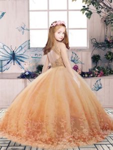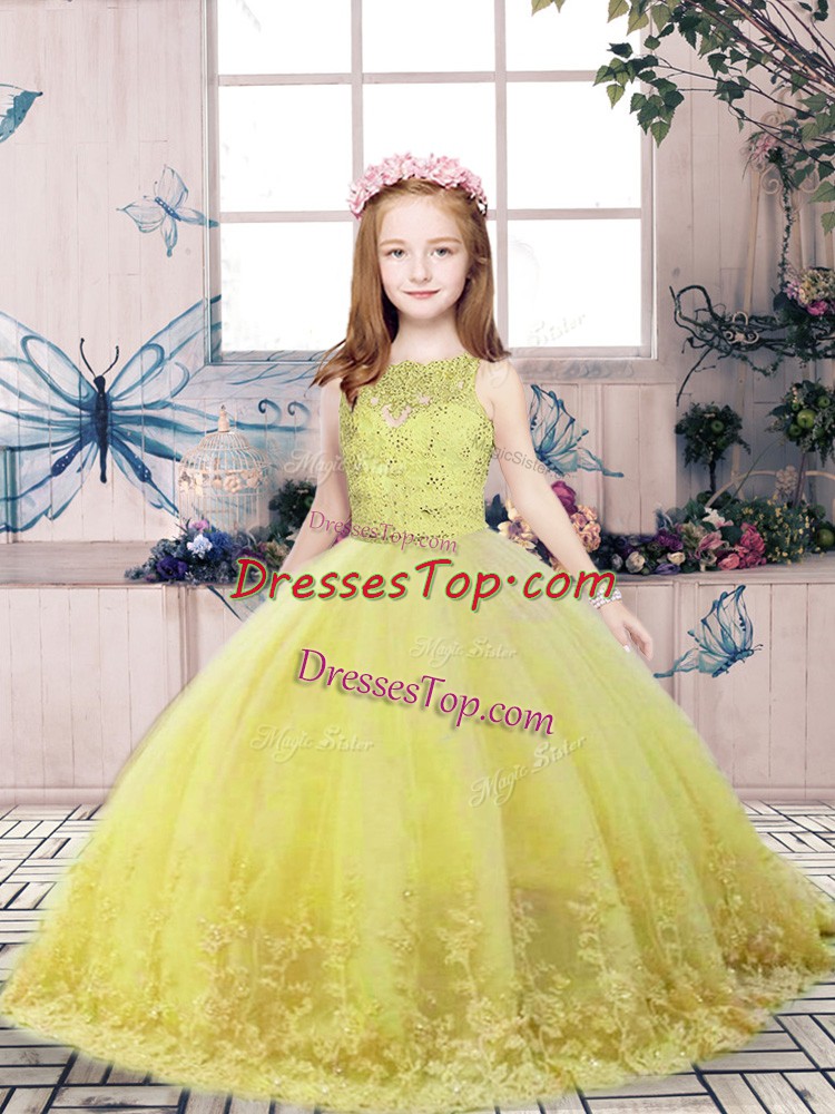 Elegant Yellow Green Scoop Backless Lace and Appliques Kids Pageant Dress Sleeveless