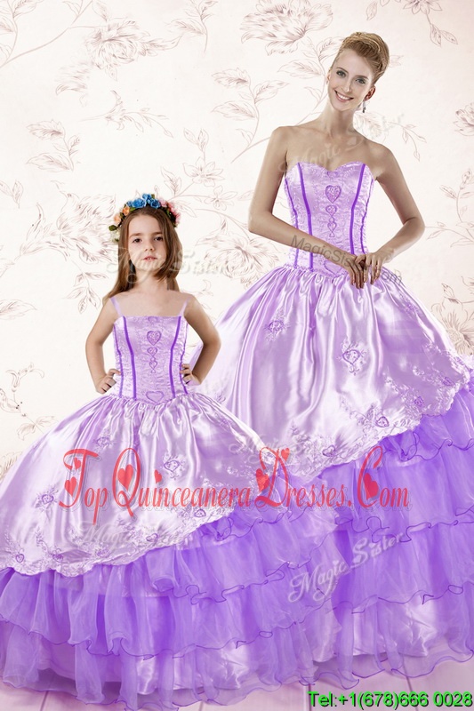 Embroidery and Ruffled Layers Vestidos de Quinceanera Lavender Lace Up Sleeveless Floor Length