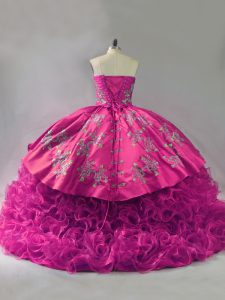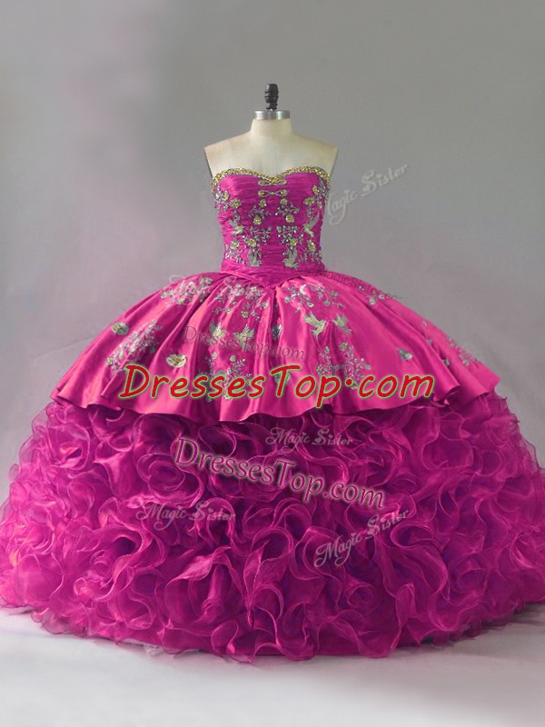 Embroidery and Ruffles Vestidos de Quinceanera Fuchsia Lace Up Sleeveless Floor Length
