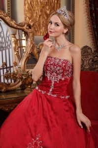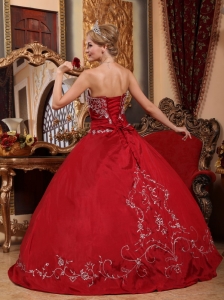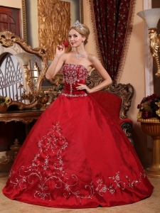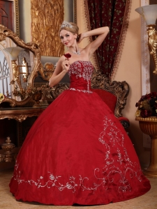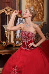 Embroidery Ball Gown Wine Red Quinceanera Dress Strapless