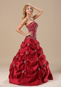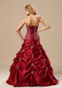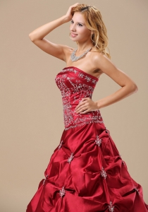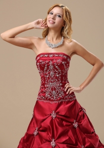 Embroidery Bodice Pick-ups A-line Wine Red Quinceanera Dress