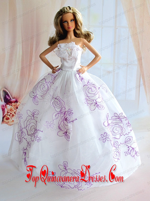 Embroidery Decorate White Taffeta Ball Gown Barbie Doll Dress