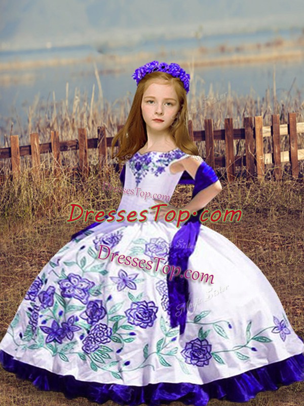 Embroidery Kids Pageant Dress White Lace Up Sleeveless Floor Length