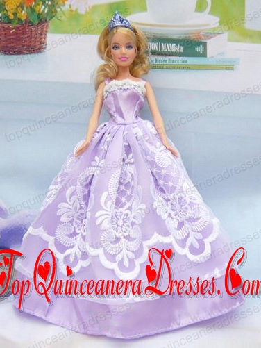 Embroidery Lilac For A-line Barbie Doll Dress