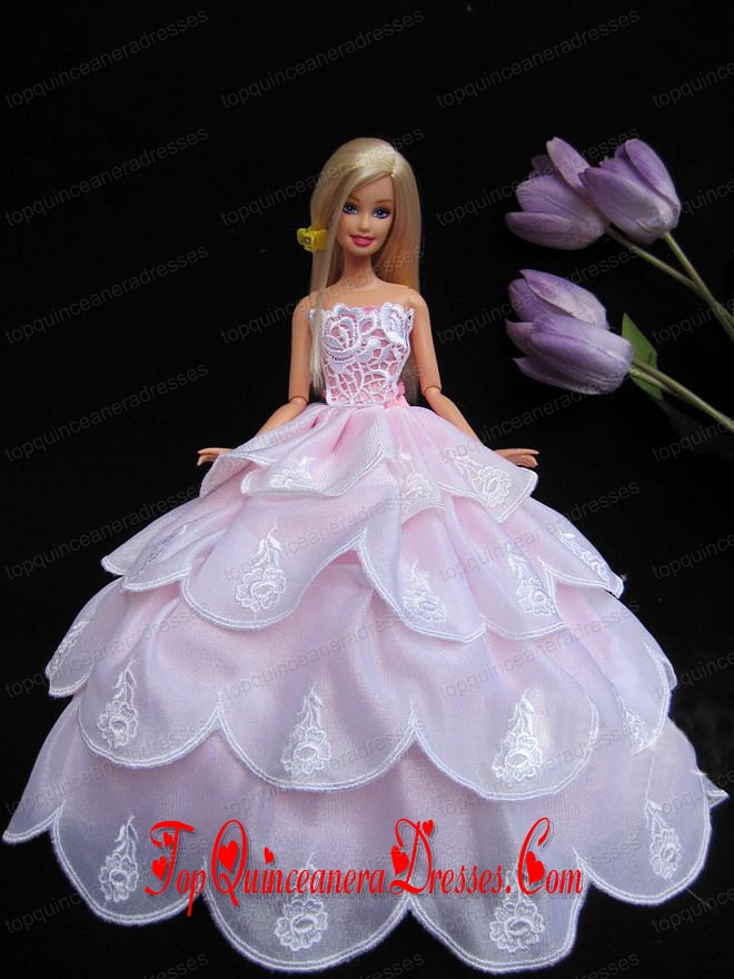 Embroidery Pink Ruffled Layers Ball Gown Barbie Doll Dress