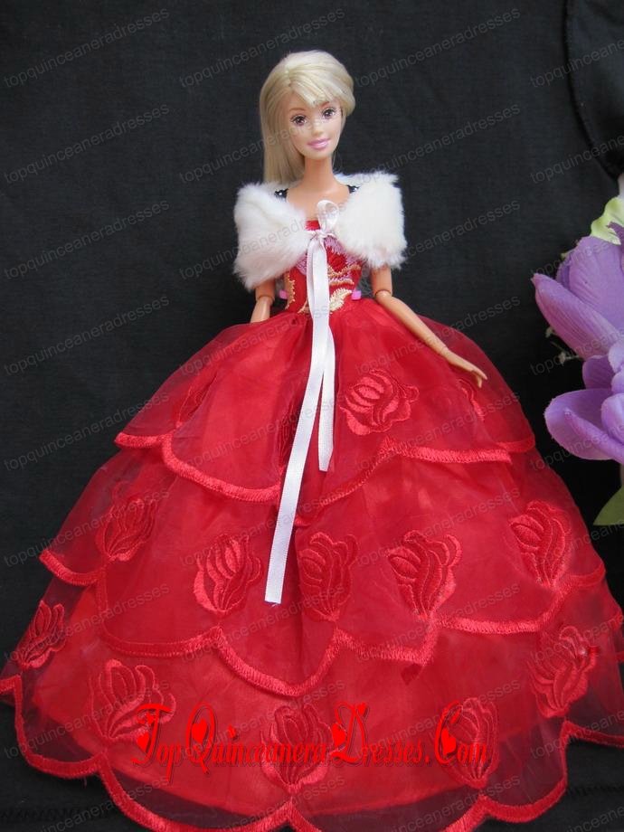 Embroidery Red Organza Ball Gown Gown For Barbei Doll