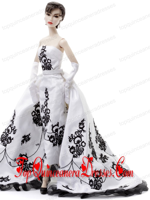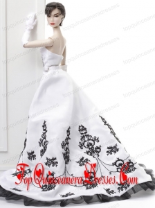 Embroidery Wedding Dress To Fit the Barbie Doll With Brush Train