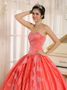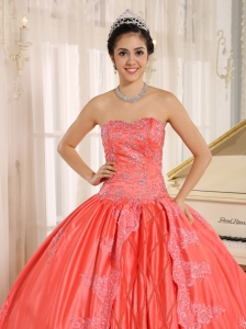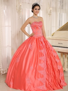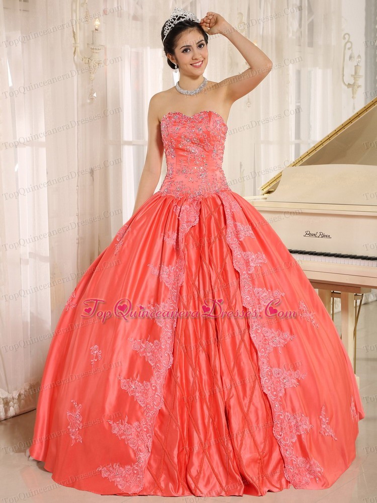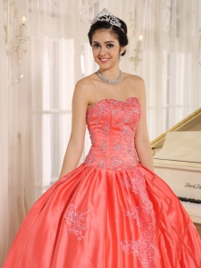 Embroiery Beading Quinceanera Dress Decorate Taffeta Watermelon