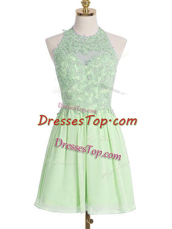 Empire Chiffon Halter Top Sleeveless Appliques Knee Length Lace Up Damas Dress