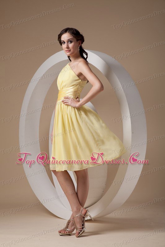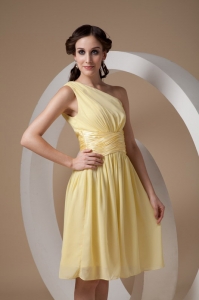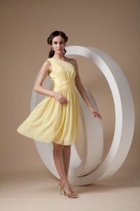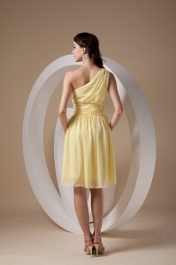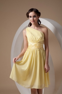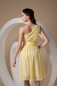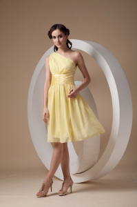 Empire Dama Dress One Shoulder Knee-length Chiffon Ruch Yellow