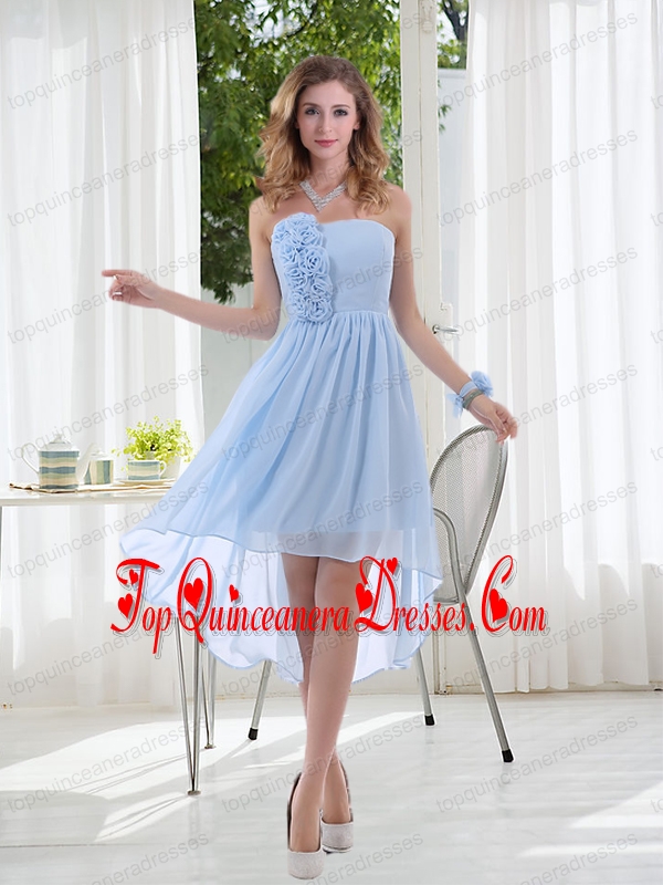 Empire Strapless Hand Made Flowers Dama Dress with High Low