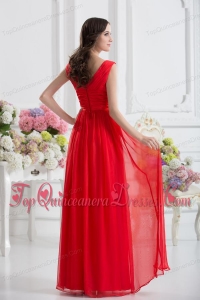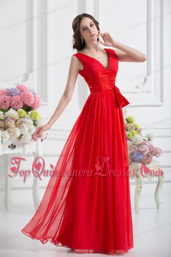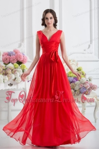 Empire V-neck Ruching Sashes Chiffon Dresses for Dama with Wine Red