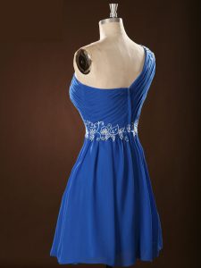 Empire Vestidos de Damas Blue One Shoulder Chiffon Sleeveless Mini Length Zipper