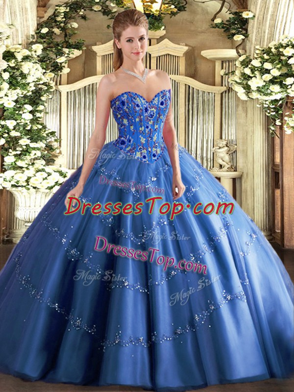 Enchanting Blue Sweetheart Lace Up Appliques and Embroidery Quinceanera Gowns Sleeveless