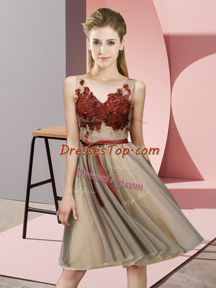Enchanting Champagne Tulle Lace Up Damas Dress Sleeveless Knee Length Appliques