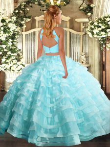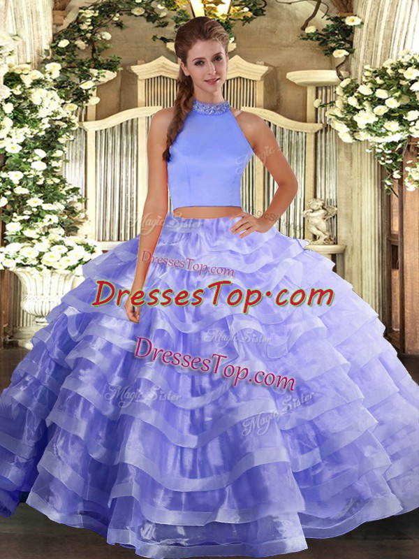 Enchanting Floor Length Lavender Quince Ball Gowns Halter Top Sleeveless Backless