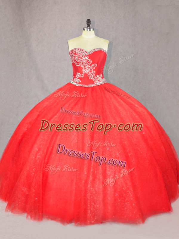 Enchanting Floor Length Red Quince Ball Gowns Sweetheart Sleeveless Lace Up