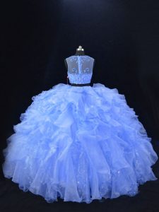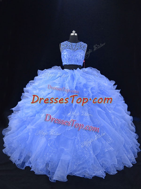 Enchanting Floor Length Two Pieces Sleeveless Blue Quinceanera Gowns Zipper