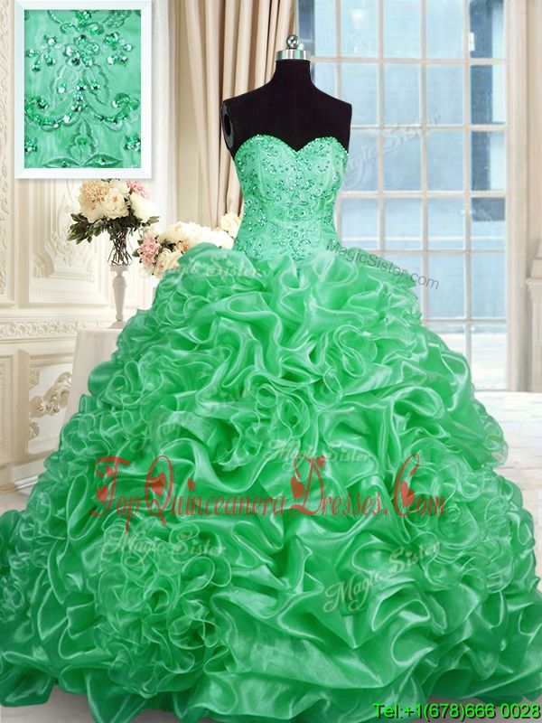 Enchanting Green Sweetheart Neckline Beading Sweet 16 Quinceanera Dress Sleeveless Lace Up