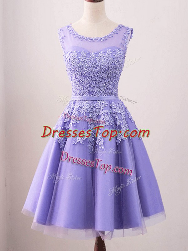 Enchanting Lavender A-line Tulle Scoop Sleeveless Lace Knee Length Lace Up Vestidos de Damas