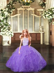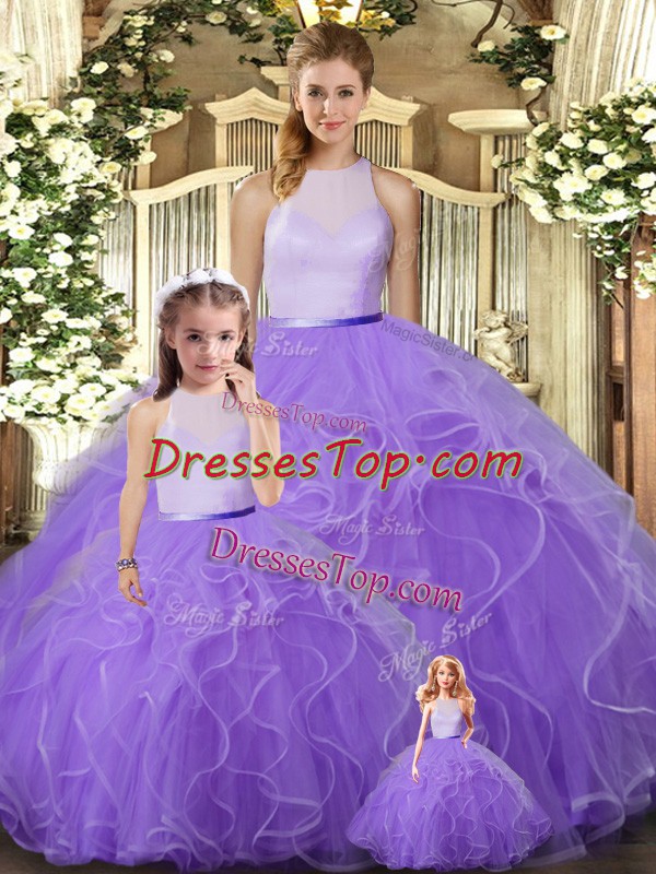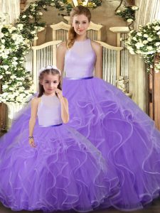 Enchanting Lavender Ball Gowns High-neck Sleeveless Tulle Floor Length Backless Ruffles Sweet 16 Dress